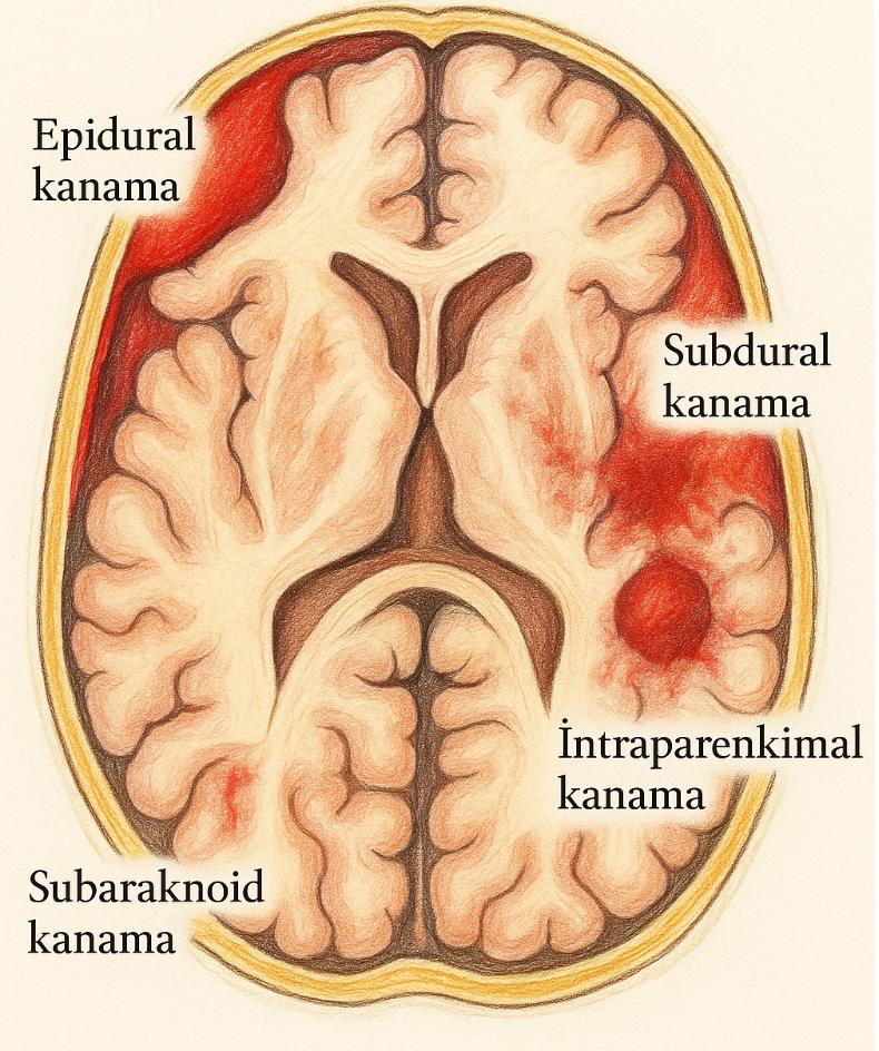 Epidural Hematom (EDH): Bu kanama türünde kan kafatası kemiği ile beyin zarının dış kısmı arasında birikir.